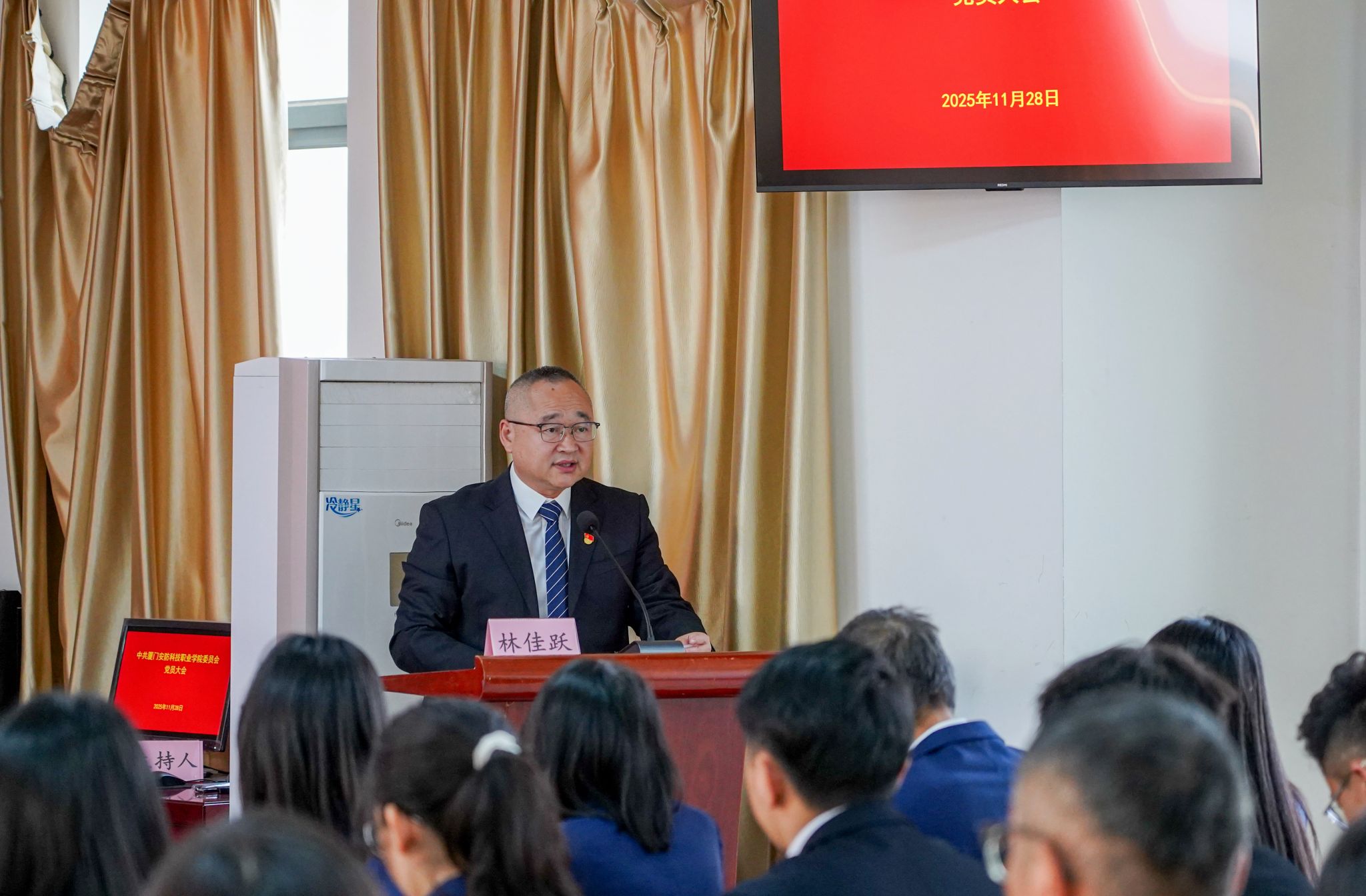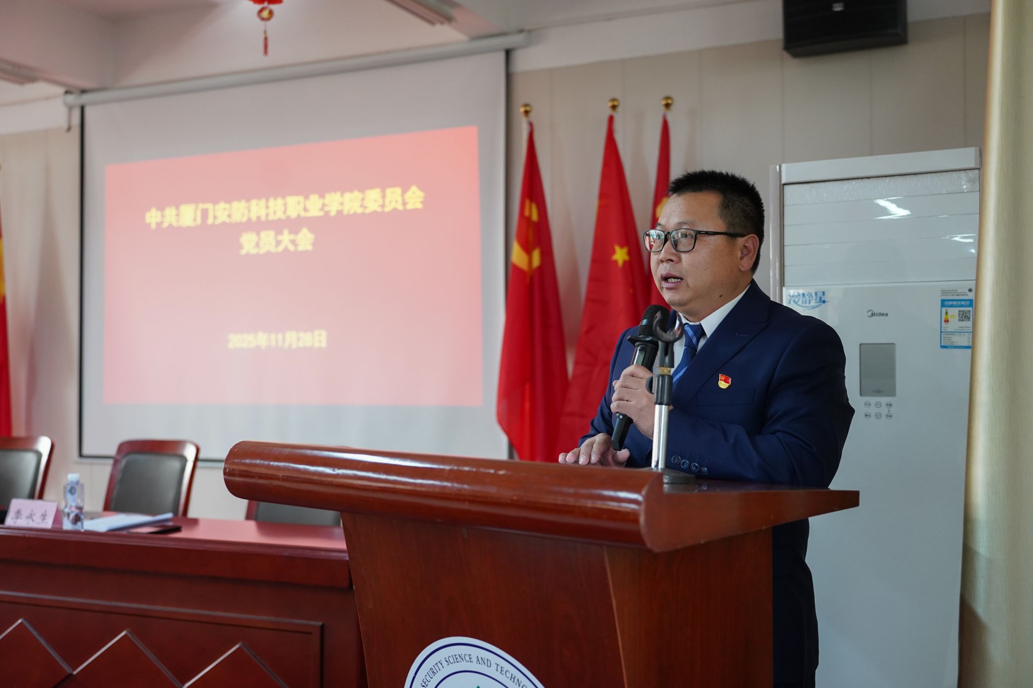 11月28日下午,厦门安防科技职业学院党委换届选举党员大会在行政楼四楼学术报告厅隆重举行。全体党员出席大会,会议由党委书记林佳跃主持,特邀校长宋泽斌列席。