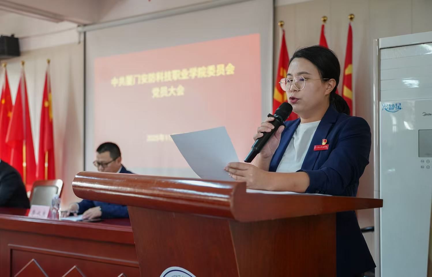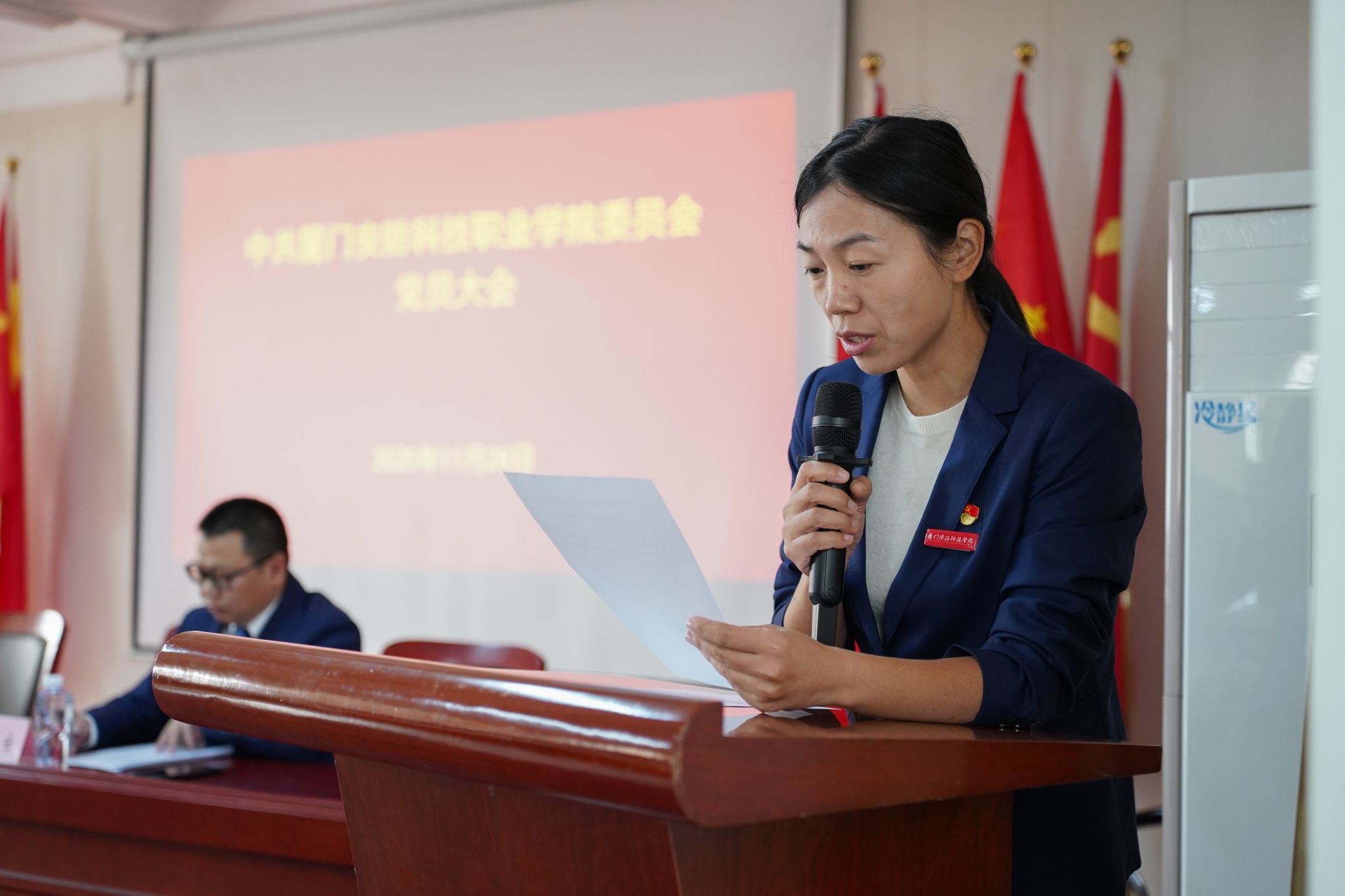 ▲ 副书记陈丽春宣读厦门市委教育工委同意我校党委换届选举的批复