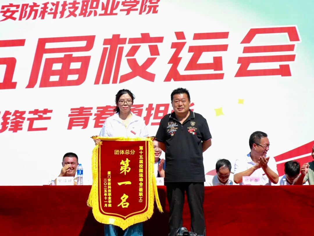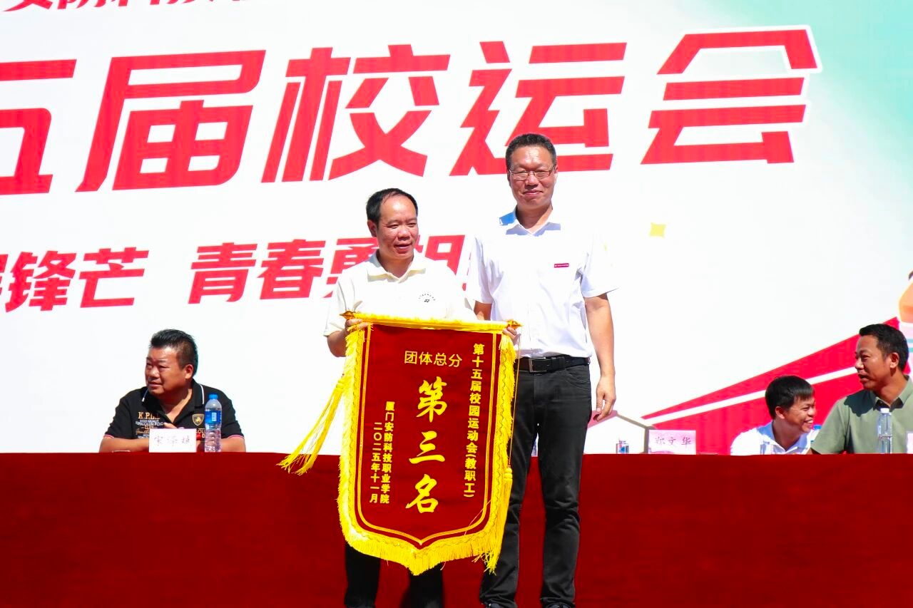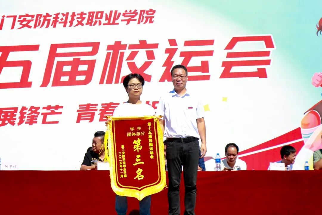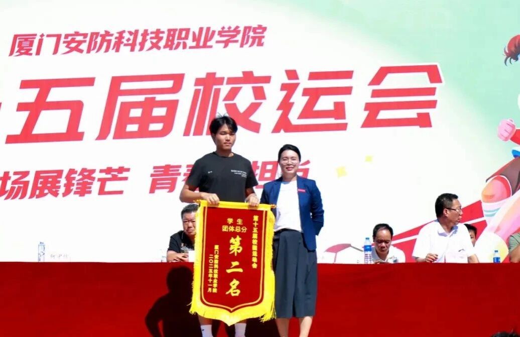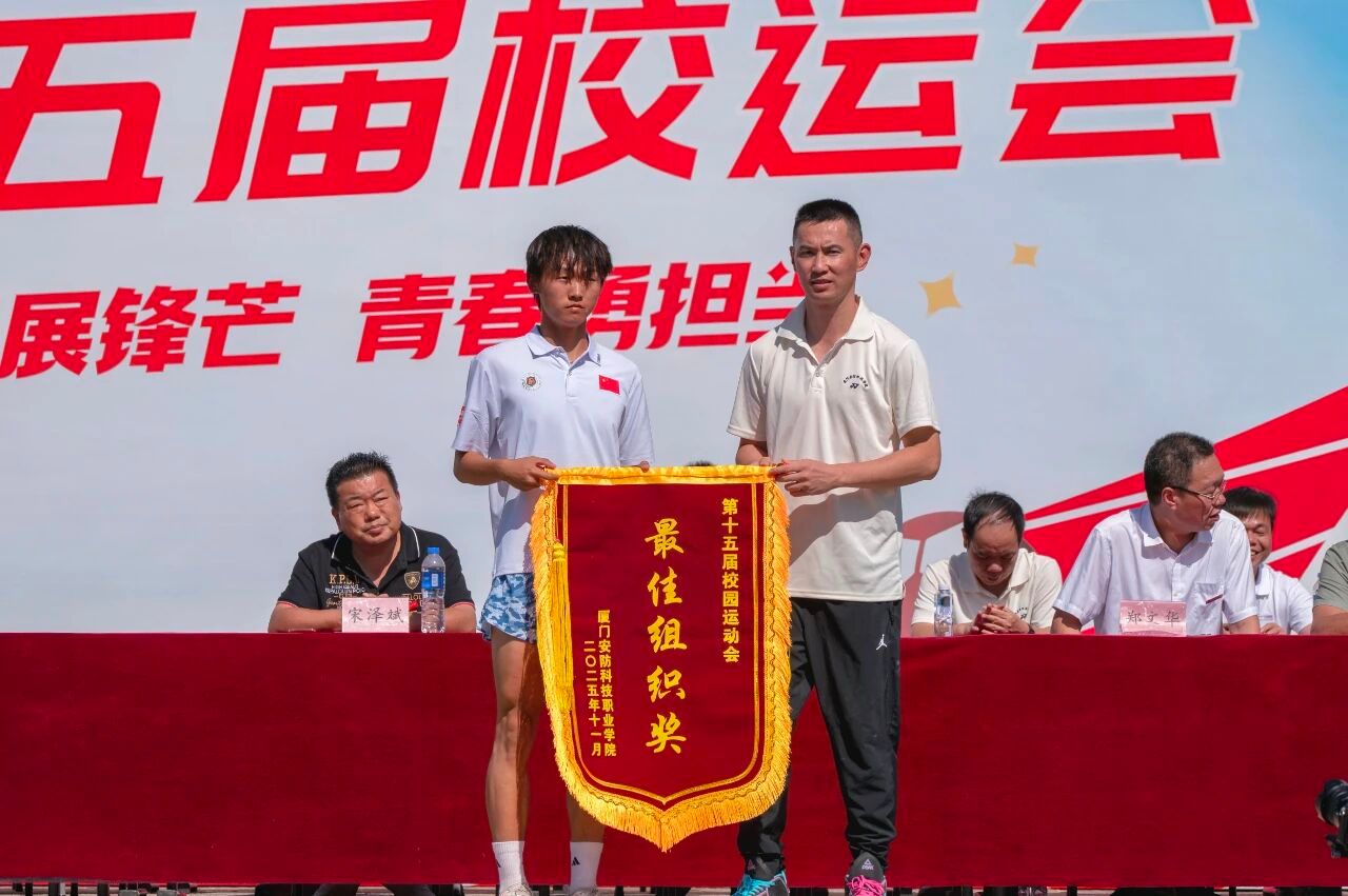 2025年11月6日上午,厦门安防科技职业学院第十五届校园运动会闭幕仪式在校田径场举行。校长宋泽斌、校党委副书记陈丽春、副校长何守信、校长助理郑文华等领导参加本次校运会闭幕仪式。仪式由副校长何守信主持。