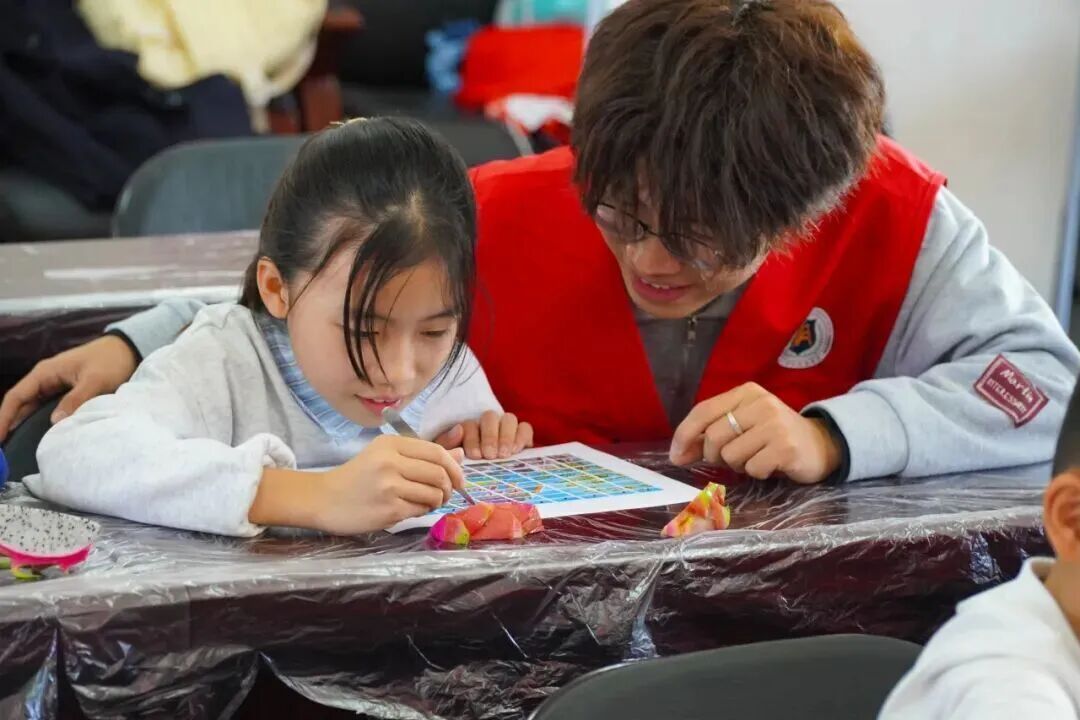 活动期间,我校志愿者前往社区居民家中开展除草清扫、杂物整理等志愿服务,同步收集居民关于火龙果收成、公共设施使用的意见建议;同时带领27名社区青少年以火龙果籽为素材创作“社区蓝图”,引导青少年观察社区现状、表达真实诉求,有效激发青少年参与社区建设的主动性。