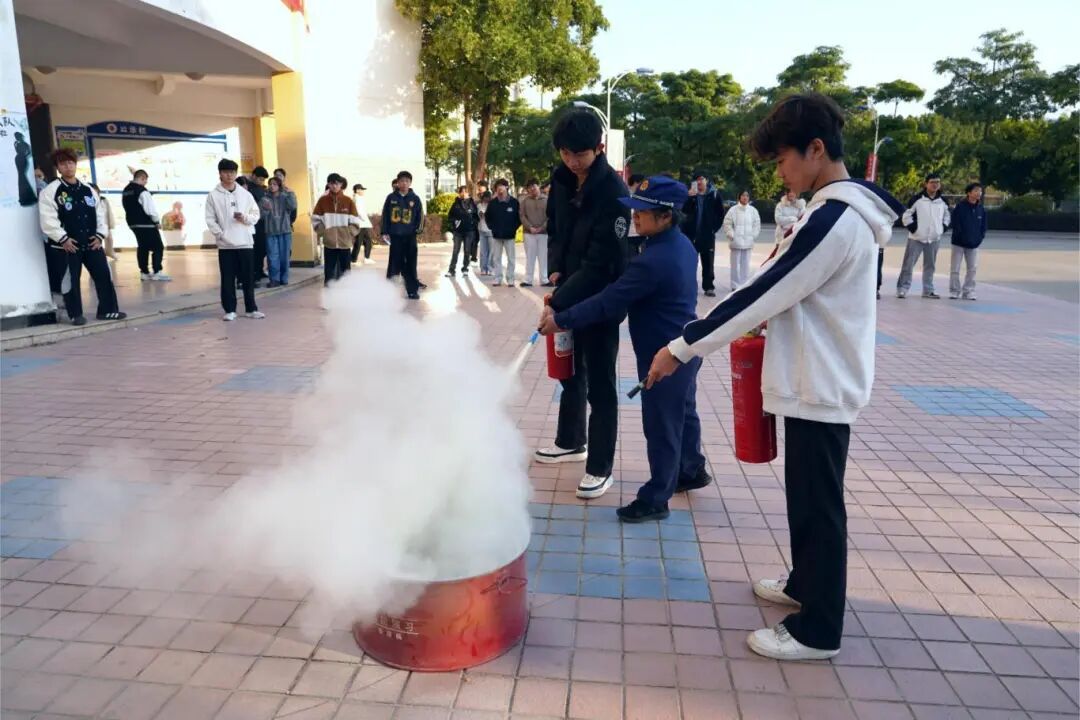 消防安全宣讲环节,翔安区消防救援大队宣讲员童玉馨围绕校园重点区域火灾风险,讲解火灾成因、报警流程、器材使用及逃生技巧,并通过现场演示灭火器“提、拔、握、压”的标准操作步骤,指导师生现场熟悉器材使用要领,帮助师生熟练掌握初期火灾扑救技能,筑牢校园消防安全防线。
