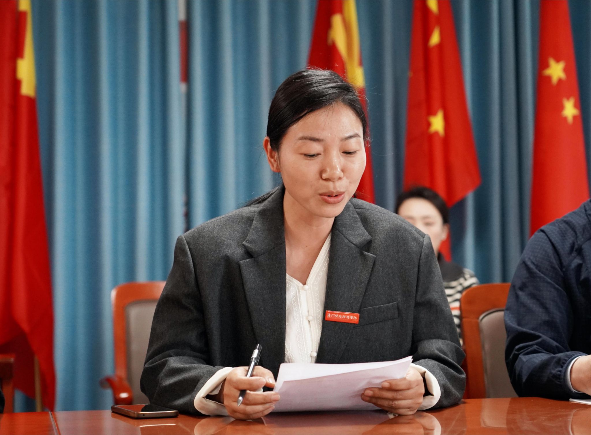 为深入构建“大思政”育人格局,全面推动课程思政高质量建设,3月18日下午,厦门安防科技职业学院召开“思政+专业”教师双元融合发展计划会议。副校长何守信出席会议,教务处处长胡小春、马克思主义学院院长陈廷姣、各二级学院院长、教研室教师代表参会,会议由马克思主义学院副院长严元容主持。