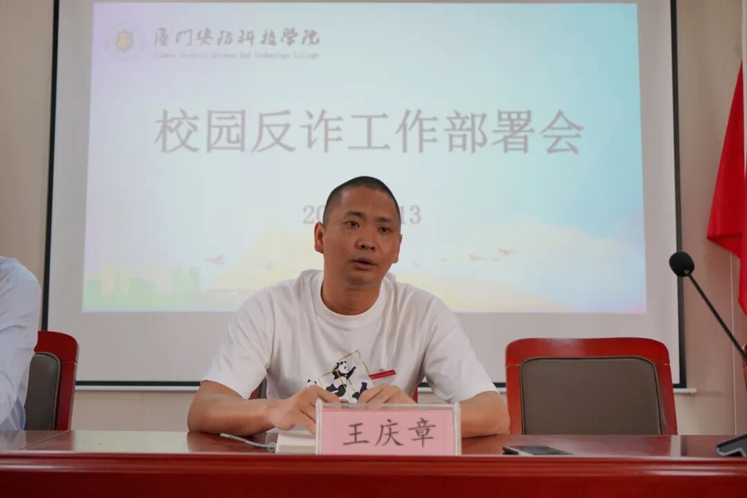 学生处处长王庆章就校园反诈具体工作进行部署,明确了各岗位职责分工,要求全体辅导员常态化开展反诈宣传教育,通过主题班会、班级群推送、案例讲解等多种形式,提升学生反诈意识和防范能力,定期开展学生反诈知识排查,及时发现并化解潜在风险。