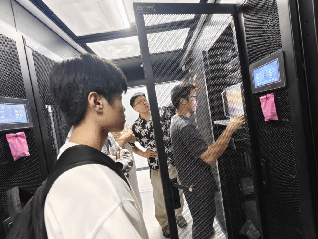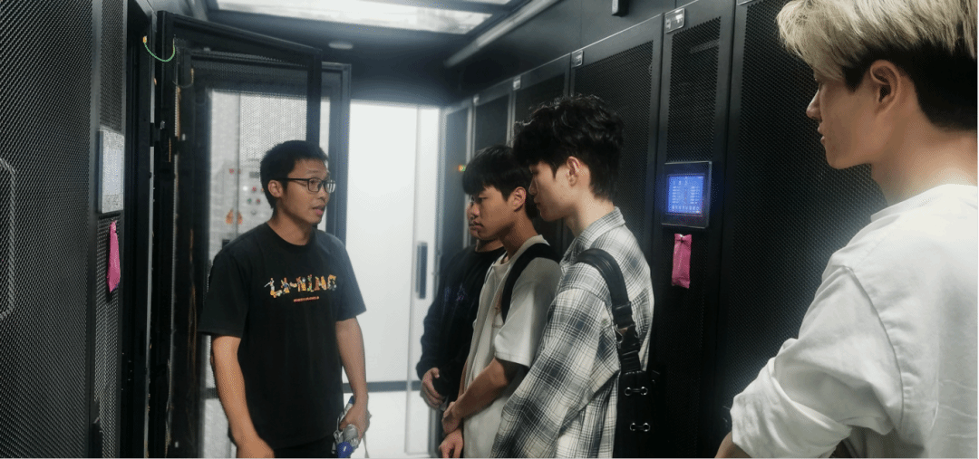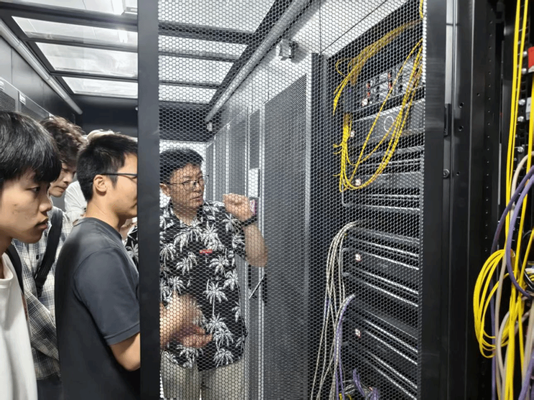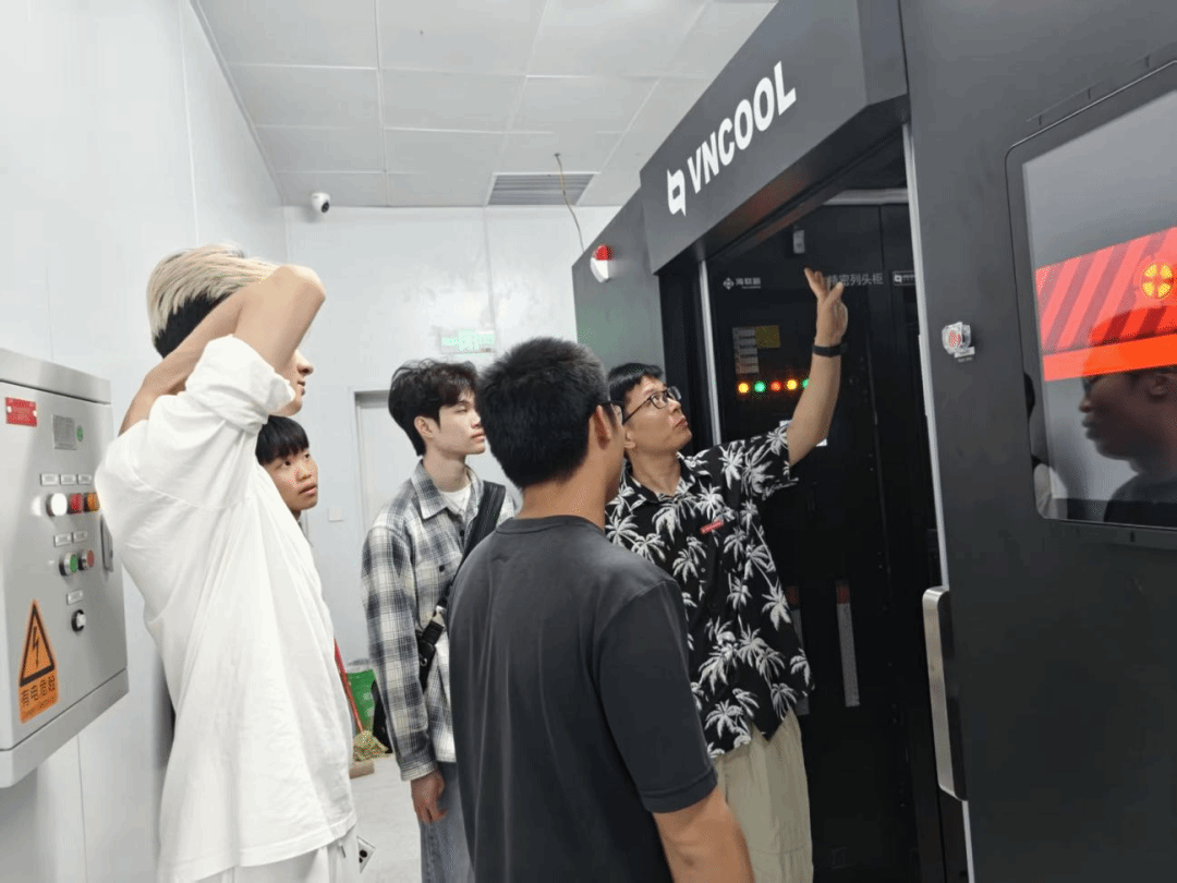 同学们认真观察设备间综合布线、散热管理及冗余设计,结合专业知识,就综合布线、数据容灾、带宽规划等问题与卢工现场交流。