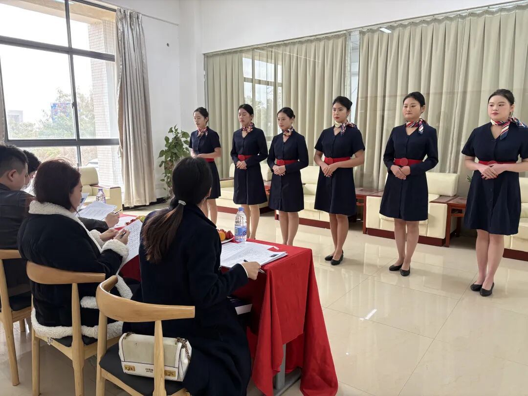 本次招聘会组织有序,面试环节以六人为一组依次进行。首轮面试中,磐德施普航空服务有限公司的面试官们从气质、谈吐、形体等多个维度对学生进行综合考察。同学们凭借扎实的专业知识、良好的沟通能力和自信的表现,给面试官留下了深刻印象。首轮面试结束后,表现优异的学生将进入下一轮复试,争取获得入职机会。