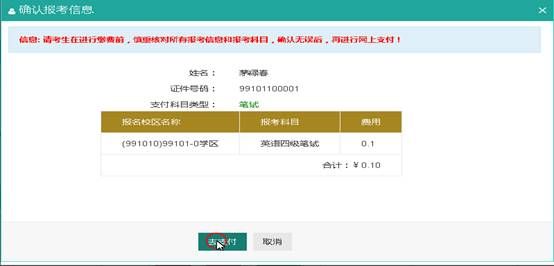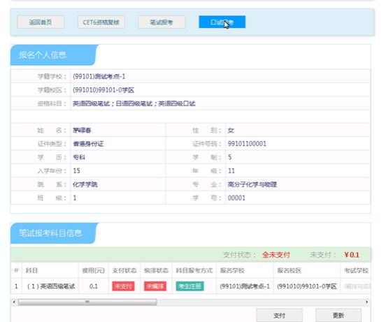 选择要报考的科目,点击“提交”按钮,返回到考生报名页面,点击“口试报考”