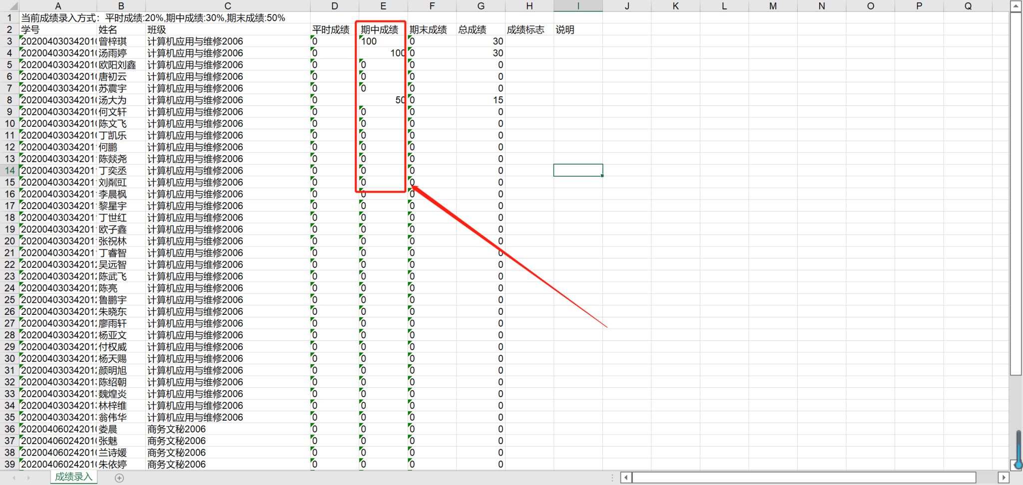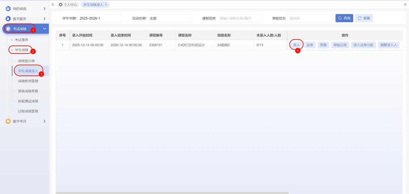 步骤2进入成绩录入界面: