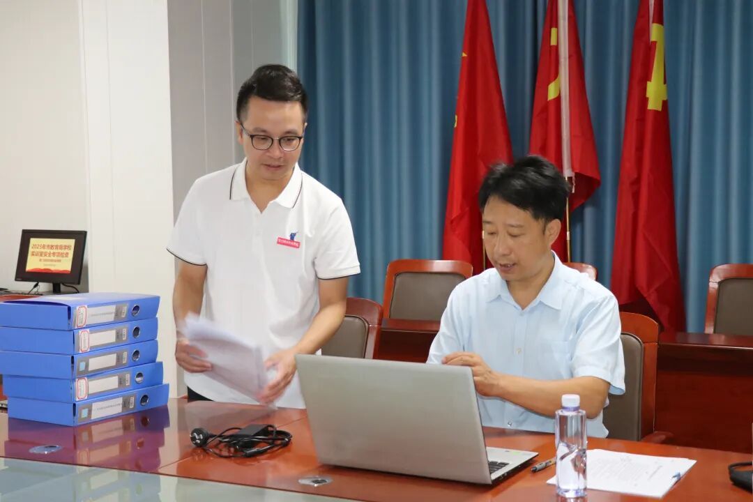 随后,在教务处、实训中心等部门相关人员的陪同下,专家组严格依据《高等学校实验室安全检查项目表》内容要求,先后对实训大楼、教学区机房、图书馆等重点场所进行了实地检查,全面查看了消防安全、器材设备、用水用电、应急管理等方面的情况。对于检查过程中发现的问题,专家组现场提出了具有针对性的整改意见。