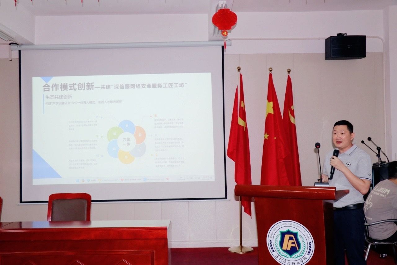 厦门安防科技职业学院副校长陈益健向与会嘉宾介绍了厦门安防科技职业学院的基本情况,回顾近年来学校在产教融合、人才培养领域的实践探索与成效,强调产教融合对职业教育高质量发展的关键作用。