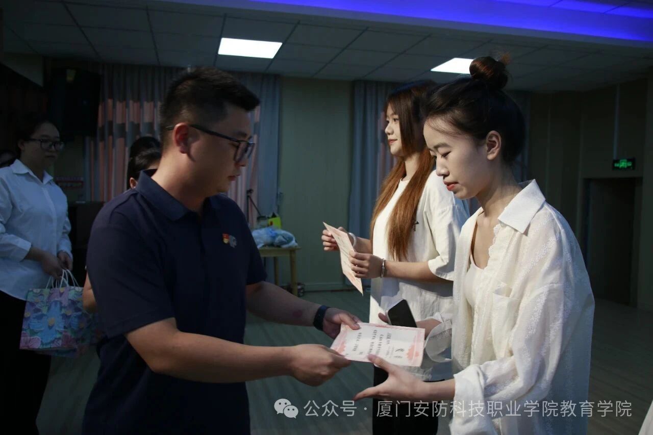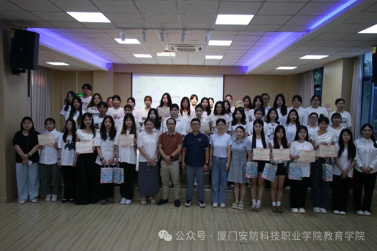 2025年6月18日下午14:30,厦门安防科技职业学院教育学院2024-2025学年第二学期期末颁奖典礼在温馨而隆重的氛围中拉开帷幕。本次典礼由学院黄秀英老师主持,教育学院院长林宋发、教育学院党支部书记、学工处负责人李少晨、学院各教研室主任等领导出席了本次颁奖典礼,与师生共同见证荣誉时刻。