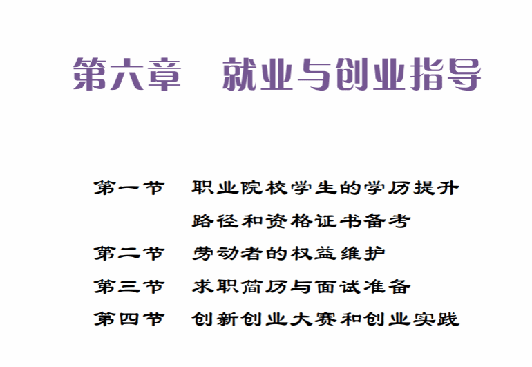 第一节 职业院校学生的学历提升路径和资格证书备考 【生涯故事案例】 分析【生涯故事案例】中的内容,提出问题: 在看到上述的案例后,你会设计出一条怎样的学业提升之路,请与同 学们一起交流.你在未来学习生活中,想考取哪些职业技能证书? 【生涯知识探索】 一、 职业教育在国民教育序列中的功能定位 职业教育是现代国民教育体系的重要组成部分,在实施科教兴国战略和人才强国战略中具有特殊的重要地位.大力发展职业教育,既是当务之急,也是长远大计.现在,我国就业和经济发展正面临着两个大的变化,社会劳动力就业需要加强技能培训,产业结构优化升级需要培养更多的高级技工.我们要从国家现代化建设的大局出发,深刻认识加强职业教育的重要性和紧迫性. 二、 中职学校学生的学历提升路径 1.“3+2”专科 “3+2”专科模式是由高职院校和部分中等职业学校共同办学的职业教育办学模式.学生入学后,先在中职学校完成3年学习,再到联合办学学校完成2年课程,拿到专科毕业证.前三年属于中职,实行中职收费标准、分段式教学,后两年实行大专收费标准.“3+2”专科毕业后拿到的文凭是普通高校全日制大专文凭,不是成人高考文凭.专科毕业后可参加高职升本科考试,继续深造大学本科学历. 2.5年一贯制专科 5年一贯制专科班,是指具有5年制大专招生资格的院校招收初中应届毕业生,按照招生计划及分数录取学生后,经过5年系统学习,拿到大专文凭,在校五年实行大专收费标准、一贯制教学.和 “3+2”大专班一样,5年一贯制专科班的学生毕业后也可参加专升本继续深造.5年一贯制专科将中等和高职教育贯通,学生及其家庭投入的教育成本较低,而教育效益和回报较高.它整体设计学生的知识、能力和素质结构,统筹安排中高等职业教育的课程体系,在五年内,既保证了高职教育的文化素质要求,又达到了国际上培养同类人才专业技术课程有效学时三年以上的要求. 3.对口升学 对口升学是国家从高校招生计划中选择部分专业,拿出专门指标,对希望继续深造的中等职业学校学生进行对口专业的高考,为优秀的中职学校学生提供上大学深造的机会.对口升学有考试入学和对口单招入学两种形式. 三、 高职学校学生的学历提升路径 1.“专升本” 对于高职生来讲,目前最便捷的学历提升方式就是 “专升本”,也是真正意义上的“无缝对接”.按照目前规定,符合条件的高职生应届毕业生 (含五年一贯制、 “3+2”连读应届毕业生),均可以在每年三月左右报名,参加专升本考试.统考科目包括,大学英语、大学语文和高等数学.近年来,高职生在 “专升本”考试中,大多数都如愿以偿,考入心仪的高校并选到合适的专业. 2.考研 高职高专毕业生可以考研,但有限制条件 (应届专科毕业生不能直接考研).按照国家规定,获得国家承认学历的专科毕业生报考硕士研究生,须毕业两年 (从专科毕业到录取为研究生当年的9月1日)或两年以上,并达到与大学本科毕业生同等学力,且符合招生单位根据本单位的培养目标对考生提出的具体业务要求.应届专科毕业生不能直接报考。 3.成人高考 成人高等学校招生全国统一考试 (简称成人高考),是为中国各类成人高等学校选拔合格的毕业生以进入更高层次学历教育的入学考试,成人高考属国民教育系列,列入国家招生计划,是国家承认学历,为全国招生统一考试. 4.自学考试 自学考试制度是世界上规模最大的、最能体现终身教育理念和学习型社会特点的开放式高等教育制度,它以国家考试为主导,以个人自主学习为基础,有广泛的社会教育资源参与助学活动,是富有中国特色的 “没有围墙的大学”,是自学成才的摇篮. 四、 职业技能资格证书种类 1.国家职业资格目录 人力资源社会保障部公布了 «国家职业资格目录 (2021年版)».共计72项职业资格.其中,专业技术人员职业资格59项;技能人员职业资格13项. 2.职业技能等级证书 职业技能等级证书是人力资源社会保障部门备案公布的用人单位和社会培训评价组织,按照国家职业技能标准和行业企业评价规范,对劳动者进行职业技能等级评价,对合格人员颁发职业技能等级证书. 【生涯体验活动】 活动一 学习制定合理的目标 活动二 生涯活动拓展 【生涯拓展阅读】 职普融通 【小结】 第二节 劳动者的权益维护 【生涯故事案例】 分析【生涯故事案例】中的内容,提出问题: 请你判断小姚、小倪、小傅、小刘、小杨的遭遇是否属于权益受损, 为什么? 【生涯知识探索】 一、 求职相关权益维护 (一)就业歧视 就业歧视是指没有法律上的合法目的和原因而基于种族、肤色、宗教、政治见解、民族、社会出身、学习方式、性别、户籍、残障或身体健康状况、年龄、身高、语言等原因,采取区别对待、排斥或者给予优惠等任何违反平等权的措施侵害劳动者劳动权利的行为。 (二)求职陷阱 求职陷阱一般是指犯罪分子利用人们求职心切而采用的手段,用于骗取求职人员的财、色,个人信息或者低廉甚至免费的人工.收取各种名目的费用是求职陷阱中的惯用伎俩,如无抵押物 (或抵押物价值较低)的押金、培训费、服装费、建档费等名目的费用. 二、 实习、 见习权益维护 实习,顾名思义,是在实践中学习,是应届生了解职业,适应社会,验证选择,明确目标的重要手段.职业见习计划是一项包括政府、见习单位、高校、人