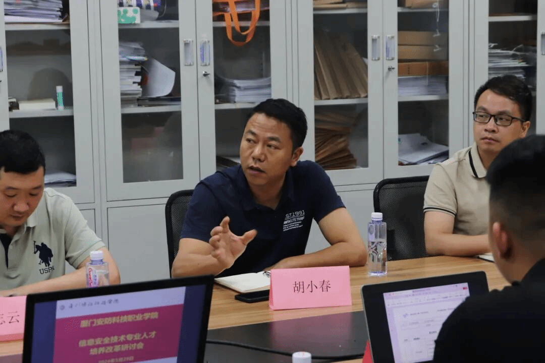 会议邀请了参与本次人培改革方案制定的校外专家厦门相径网络科技有限公司总经理林小青、技术总监陈尧林,北京网御星云信息技术有限公司厦门分公司总经理阮少茂,同时邀请我校教务处处长胡小春、教学督导李天弘作为校内专家参加研讨会。学院教学副院长张志云、教研室主任董雅棉及信息安全专业老师参会。