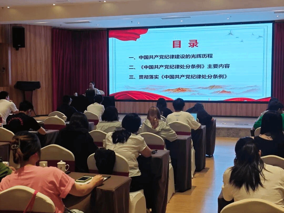 7月1日下午,泰宁县委党校办公室主任邓雪玉以学习《中国共产党纪律处分条例》为主题,深刻阐述了遵规守纪的重要性和必要性,进一步增强全体学员的纪律意识和规矩意识。