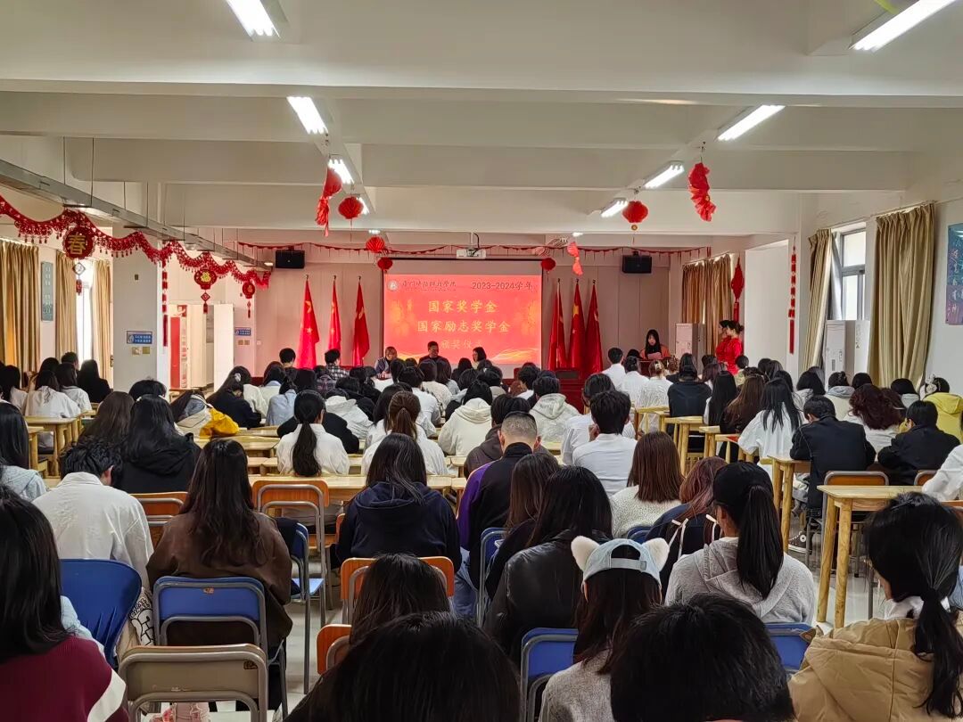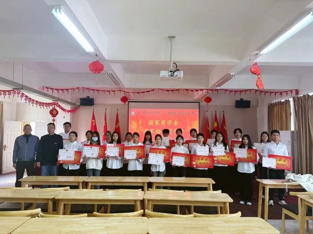 2025年4月2日下午,我校于校学术报告厅召开2023-2024学年国家奖学金、国家励志奖学金颁奖大会,校长助理郑文华,校党委委员、学生处处长王庆章,学生处资助中心郭美玲老师,各二级学院学工负责人,辅导员以及获奖同学出席大会。