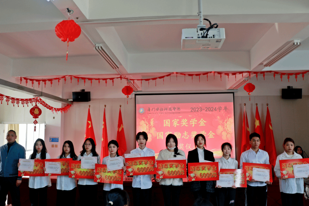 会上,学生处资助中心郭美玲老师宣读2023-2024学年国家奖学金及励志奖学金获奖名单,校长助理郑文华,校党委委员、学生处处长王庆章为获奖学生颁奖。