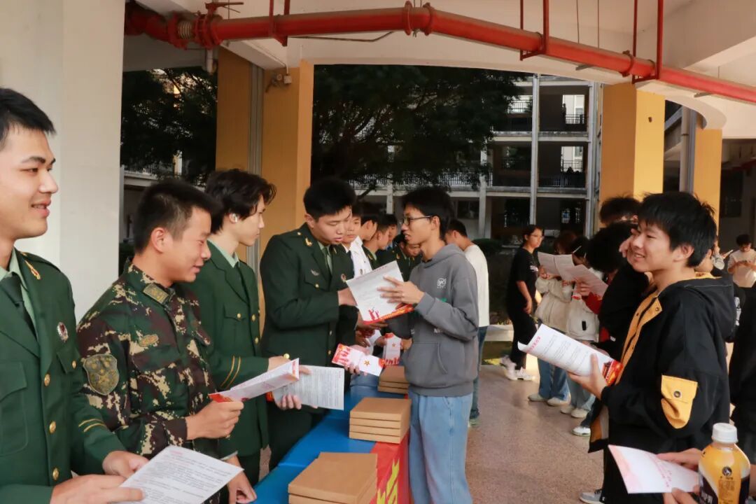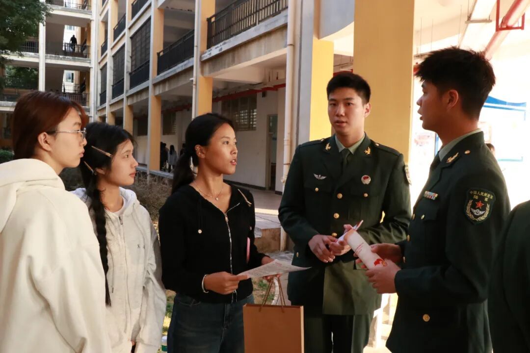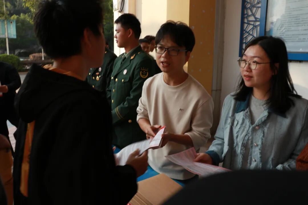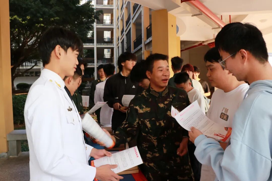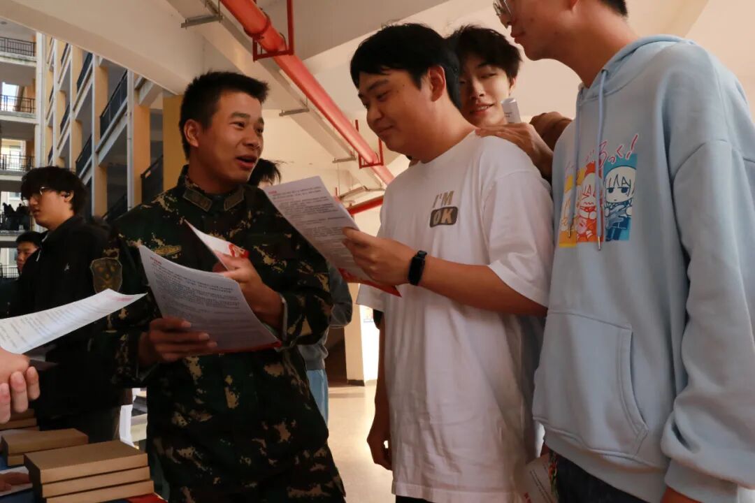 活动现场,征兵宣传资料摆放井然有序,全面涵盖征兵政策要点、入伍流程规范以及大学生士兵专享优惠待遇等内容。相关工作人员围绕本次征兵工作的报名时间、参军条件、政策支持、注意事项等方面进行了详细说明,让同学们深刻认识到参军对国家国防建设的重要意义以及对个人成长发展的积极推动作用。我校退役大学生士兵分享了自己的入伍经历与军旅生活,并对现场同学们提出的问题进行了详细解答,以个人经历鼓励同学们积极回应号召,携笔从戎,为国家的国防事业贡献力量。
