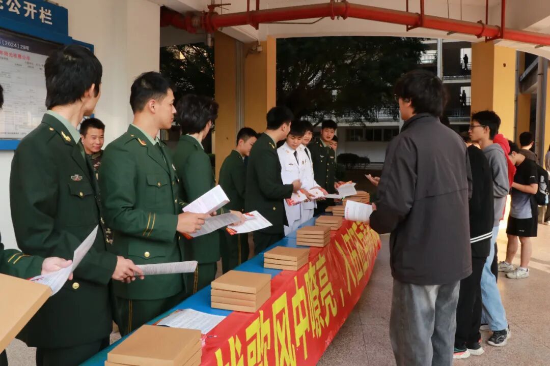 为积极响应国家征兵号召,向广大适龄青年传递参军报国的使命与担当,2024年12月11日下午,我校学生处于校内设立征兵宣传咨询点开展征兵工作宣传活动。