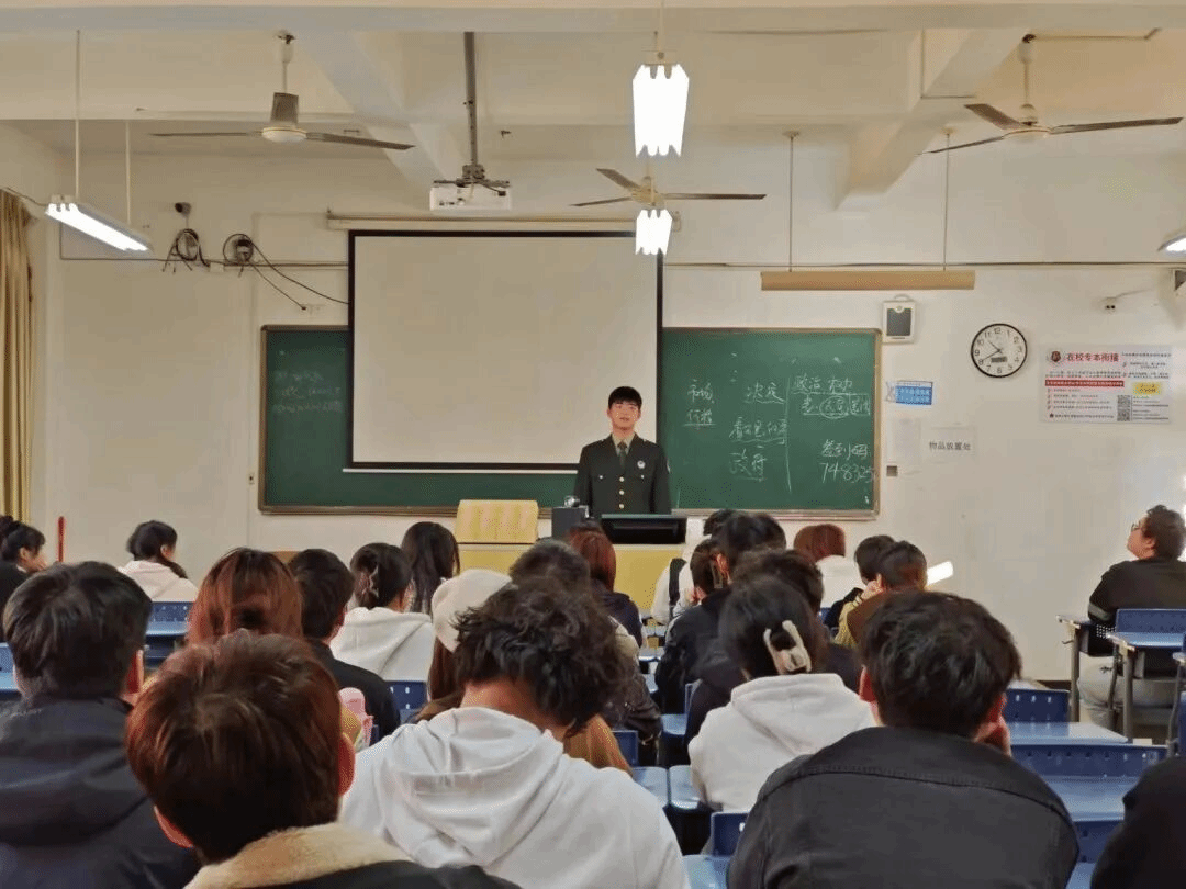 在征兵宣讲会上,我校多名退役士兵学生担任“大学生征兵宣传员”,结合自身部队服役经历,分享了军旅生活的点滴和思想的成长蜕变,鼓励现场同学积极响应国家号召,携笔从戎,让青春在军营绽放光彩。