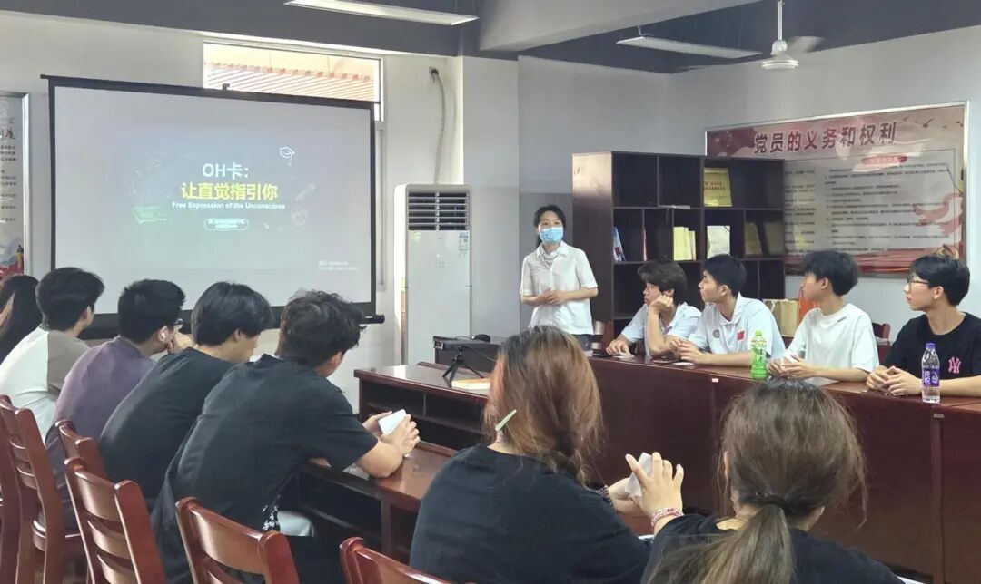 为深化学生对自我认知的理解,活动设置了禅绕画创作、OH卡探索、树洞倾诉等多样化心理游戏项目。在学生处心理咨询中心陈春婷老师的组织下,同学们在轻松游戏中激发潜意识对话,解锁自我认知新维度,实现情绪的安全释放与疏导。