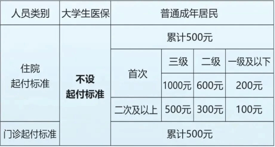 1.大学生医保不设起付标准