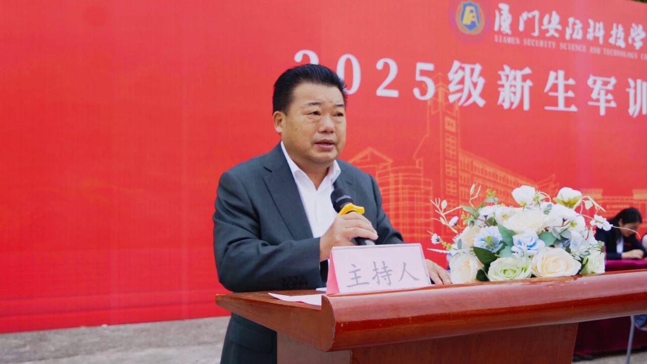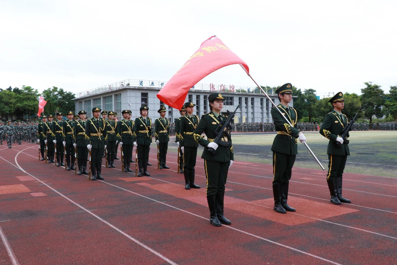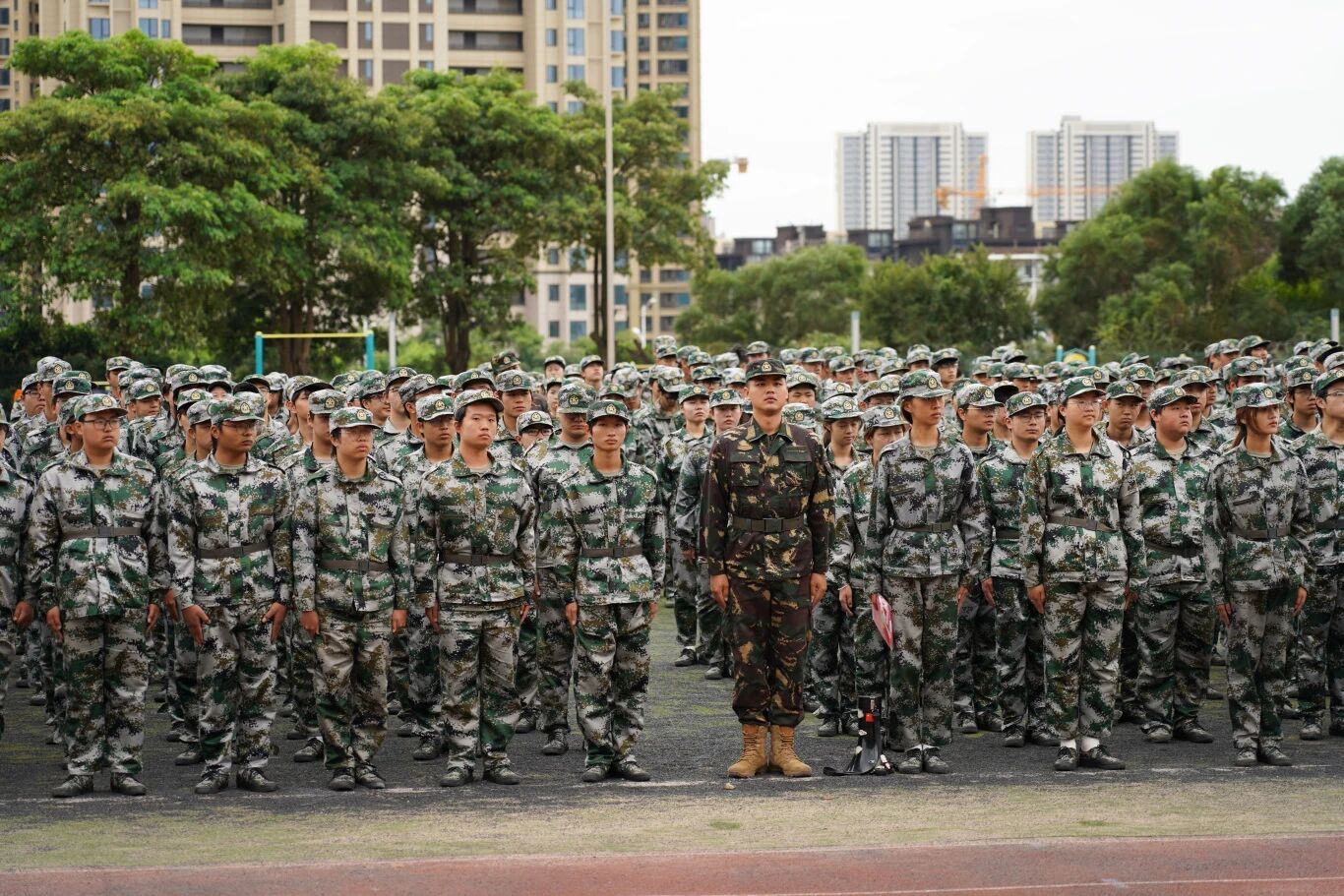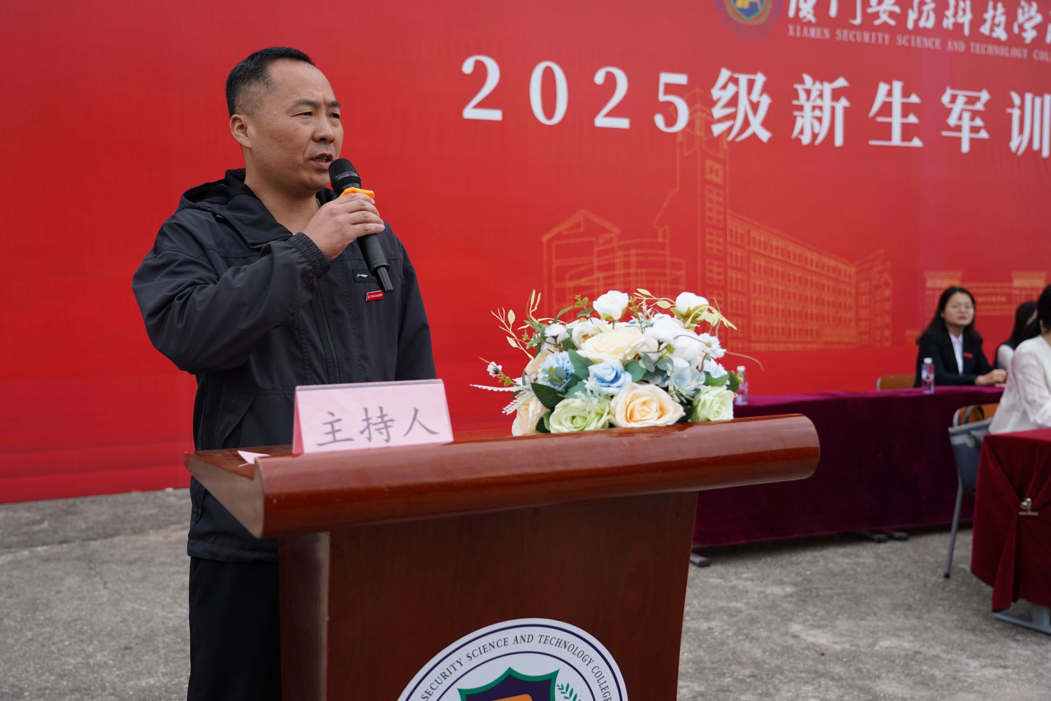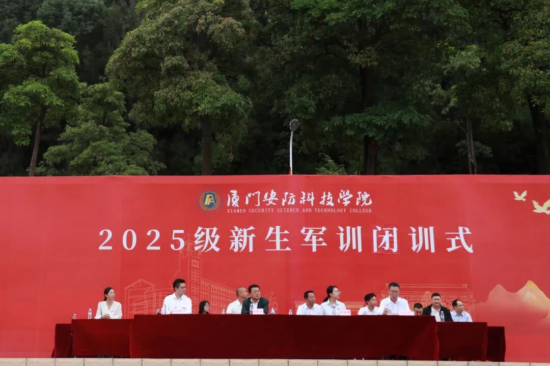 校长宋泽斌、校党委副书记陈丽春、副校长何守信、校长助理郑文华出席,各二级学院、相关职能部门负责人、全体承训教官以及2025级学生参加仪式。