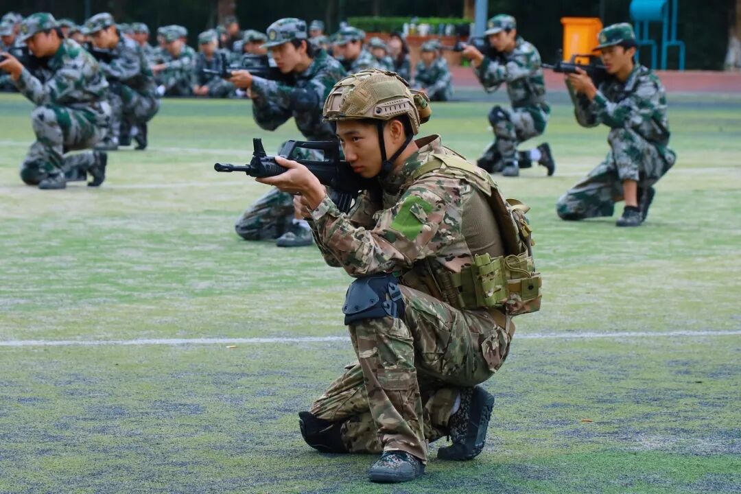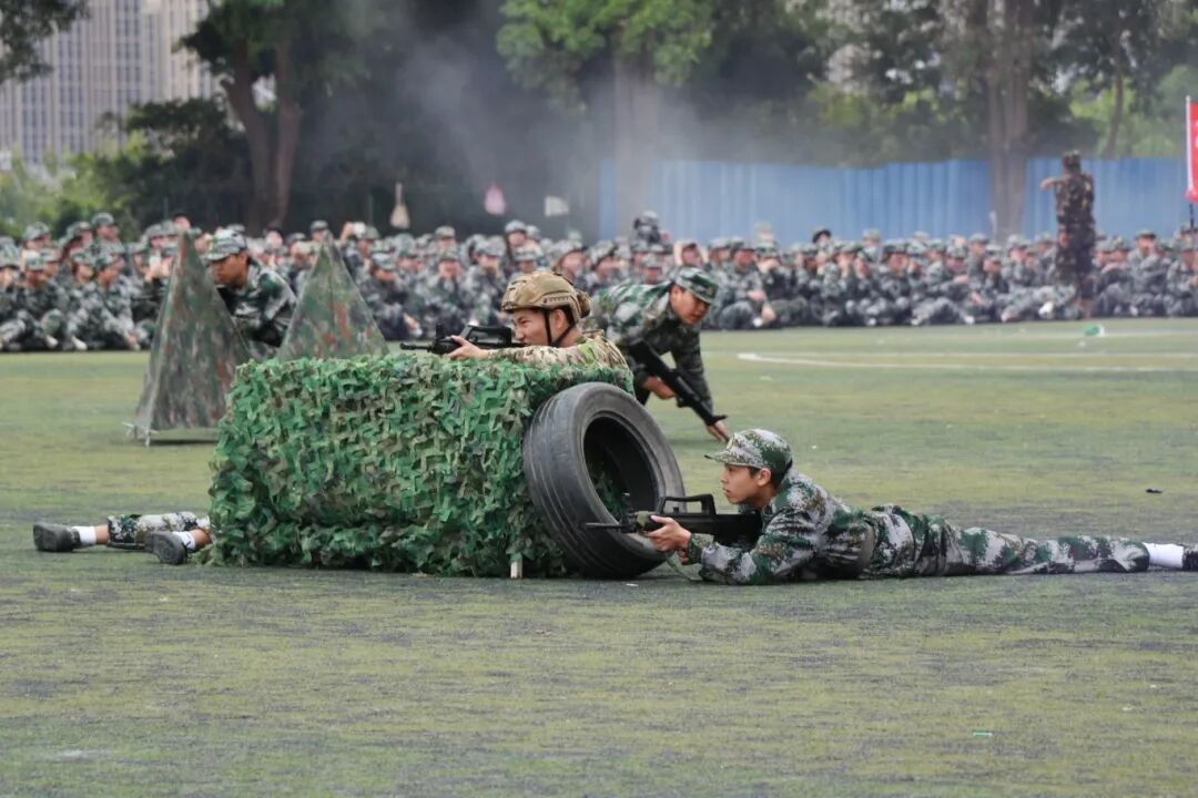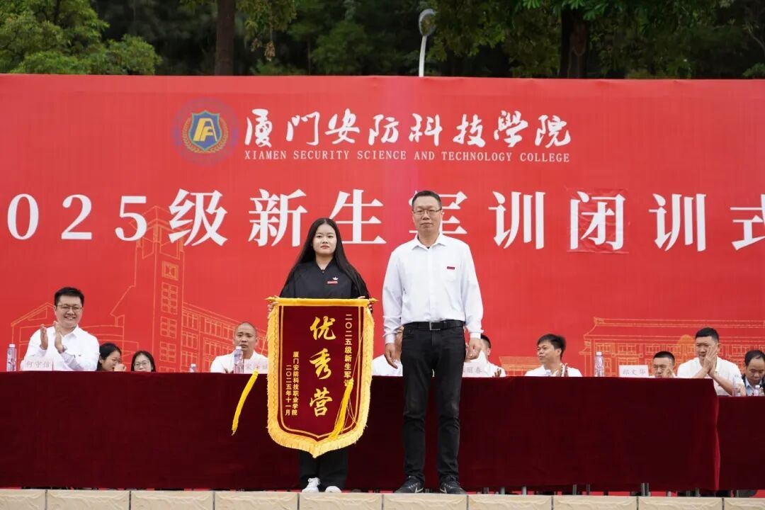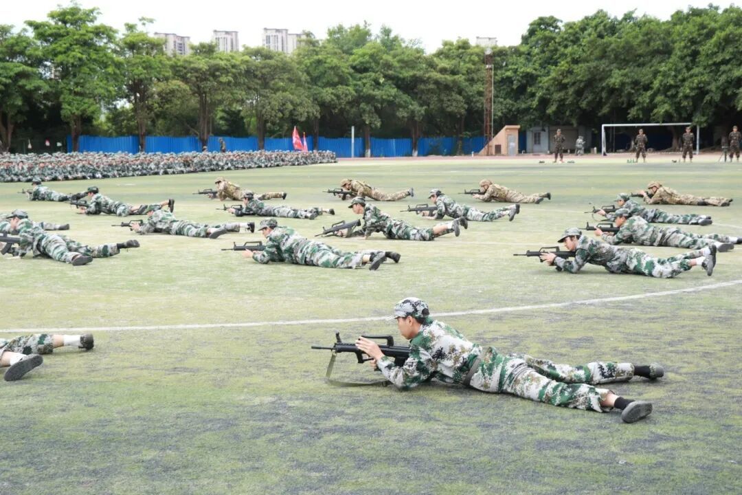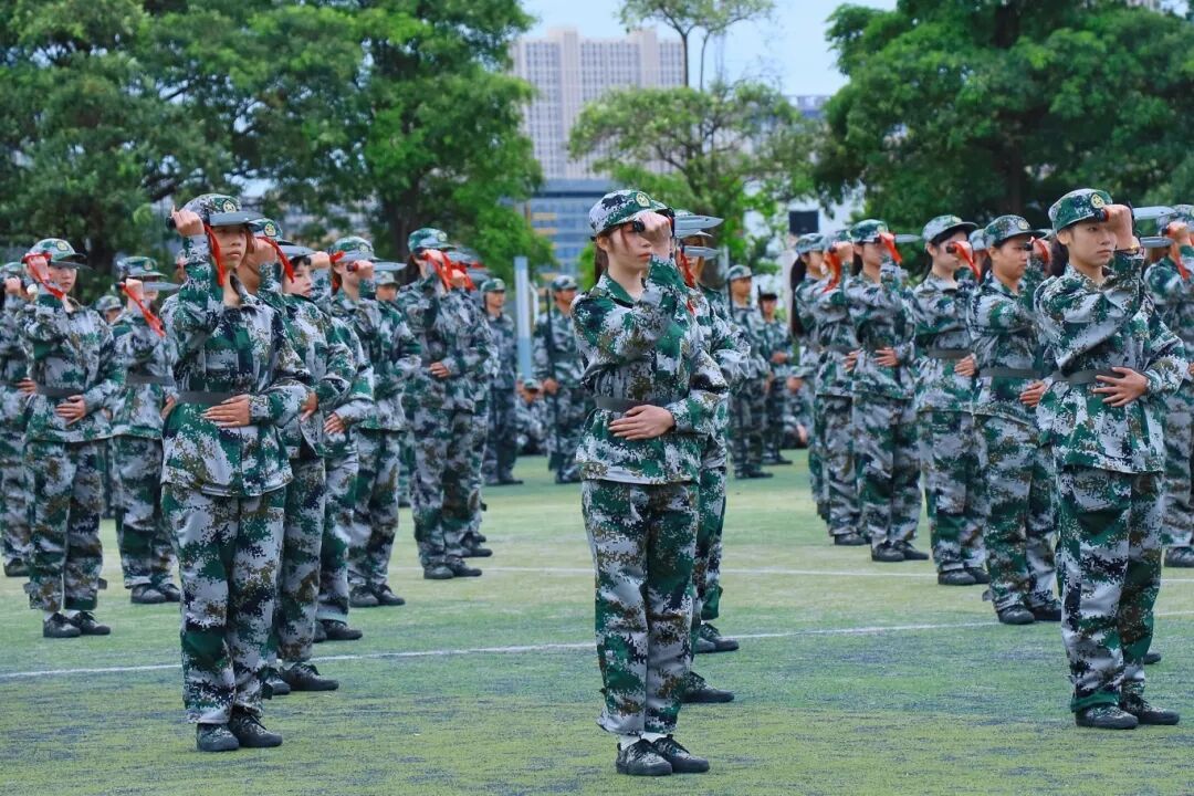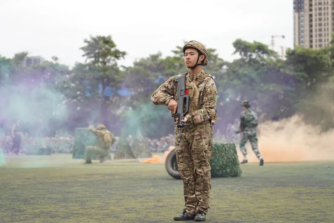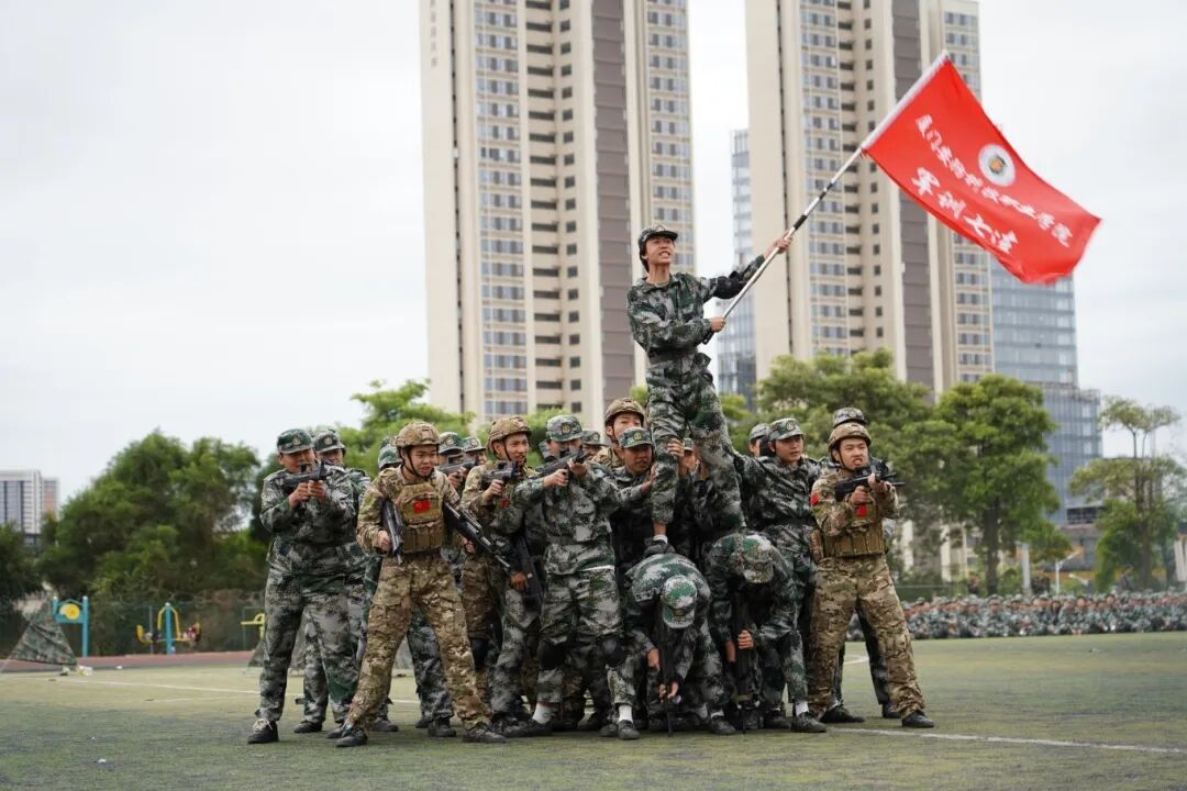 校长宋泽斌、校党委副书记陈丽春、副校长何守信、校长助理郑文华出席,各二级学院、相关职能部门负责人、全体承训教官以及2025级学生参加仪式。