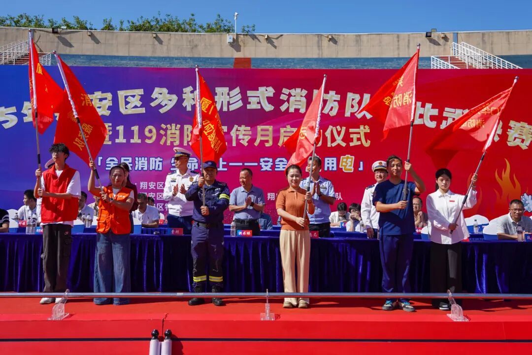 11月7日上午,2025 年度翔安区多种形式消防队伍比武竞赛暨119消防宣传月启动仪式在翔安区人民体育场隆重举行。此次活动由翔安区人民政府主办,区总工会、区应急管理局、区消防救援大队承办,区物业管理协会协办,以“仪式强宣、竞赛促训”为宗旨,为秋冬季节消防安全工作筑牢基础。厦门市消防救援支队副支队长曾刚、翔安区副区长洪求瑛莅临现场指导,区消防安全委员会成员单位代表共同观摩,我校消防专业师生代表及志愿服务队成员受邀参加活动。