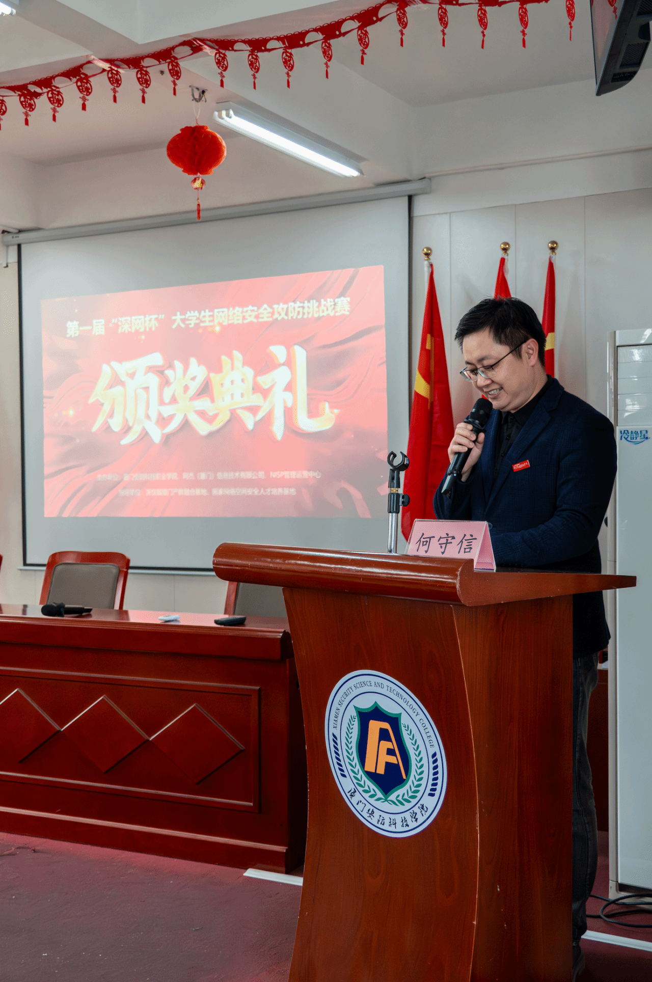 近日,厦门安防科技职业学院首届“深网杯”大学生网络安全攻防挑战赛颁奖仪式在学术报告厅隆重举行。本次活动由我校与深信服厦门产教融合基地联合举办,旨在进一步推动“以赛促教、以赛促学”的育人理念,深化产教融合,助力网络安全人才培养。